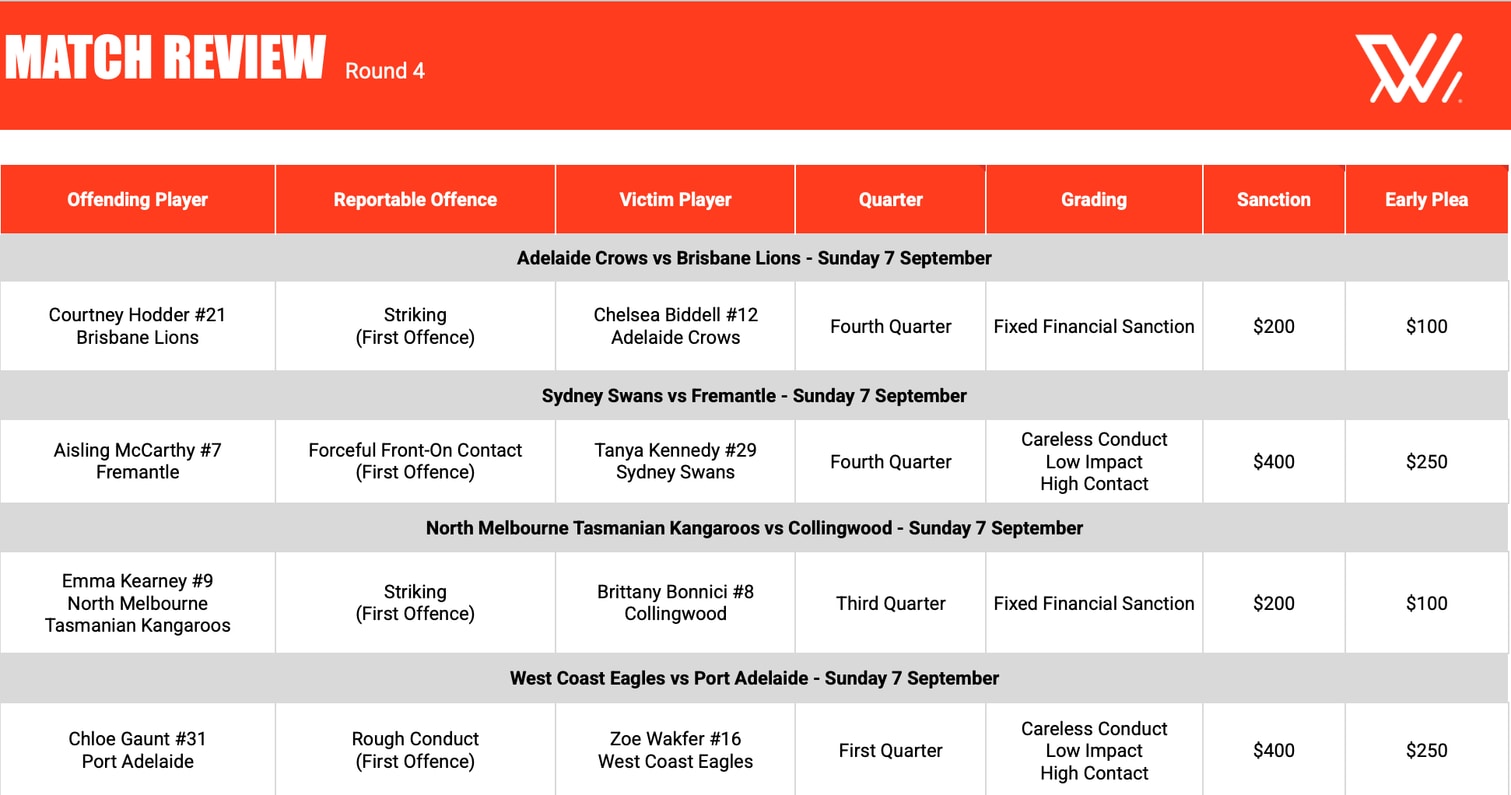AFLSportsAFLW match review: Four players fined by M.Naveed0 Share0 FOUR players have been fined across round four of the 2025 NAB AFLW season.