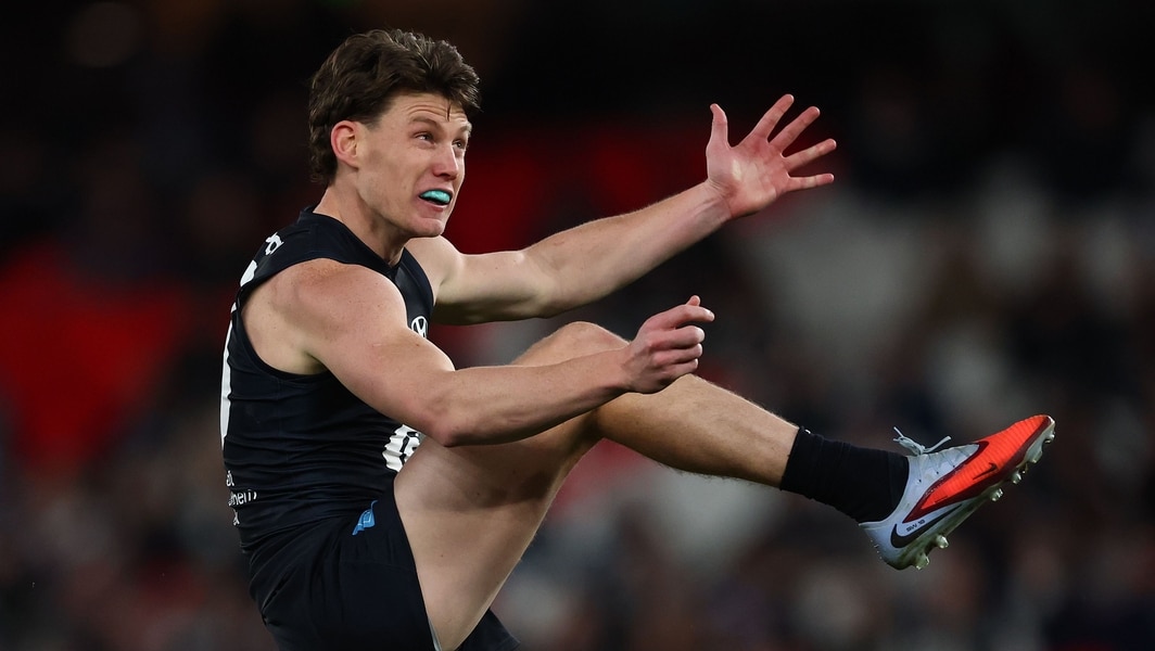 Sam Walsh in action during the R23 match between Carlton and Port Adelaide at Marvel Stadium on August 16, 2025. Picture: Getty Images/AFL Photos
