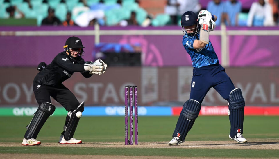 NZ-W vs ENG-W, Women’s Cricket World Cup 2025, brief scores: New Zealand 168 in 38.2 overs (Georgia Plimmer 43; Linsey Smith 3/30) lost to England 172/2 in 29.2 overs (Amy Jones 86*; Lea Tahuhu 1/9) by eight wickets.