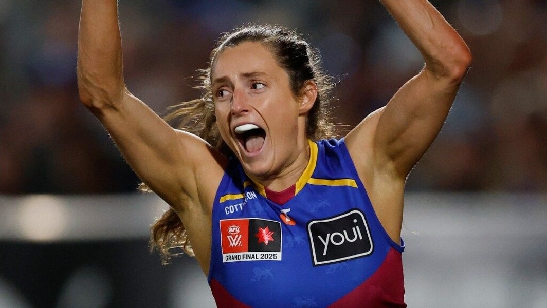 As she did in the 2023 Grand Final, Charlie Mullins bobbed up for Brisbane’s first goal, but this one came far earlier in the piece, forcing Jas Ferguson to cough up a throw and convert the opening major of the match.