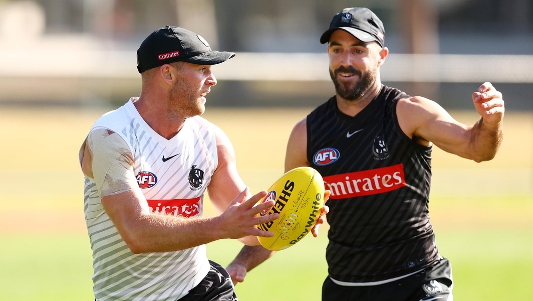 Tom Mitchell and Steele Sidebottom at Collingwood training on March 5, 2025. Picture: AFL Photos