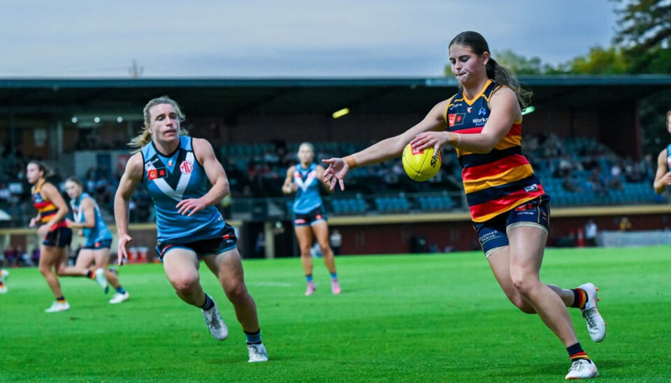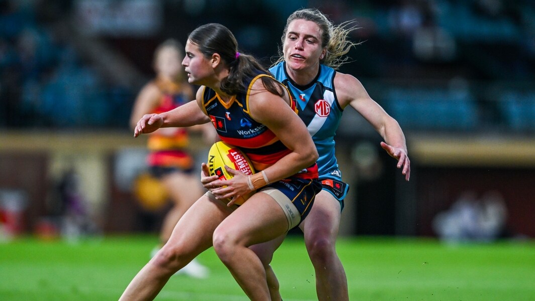 India Rasheed in action during Adelaide’s clash against Port Adelaide in round 11, 2025. Picture: AFL Photos