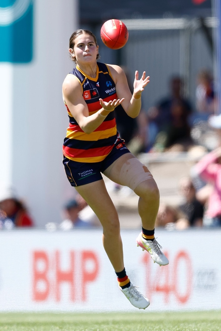 India Rasheed marks the ball during the AFLW Elimination Final between Adelaide and St Kilda at Norwood Oval on November 9, 2025. Picture: AFL Photos