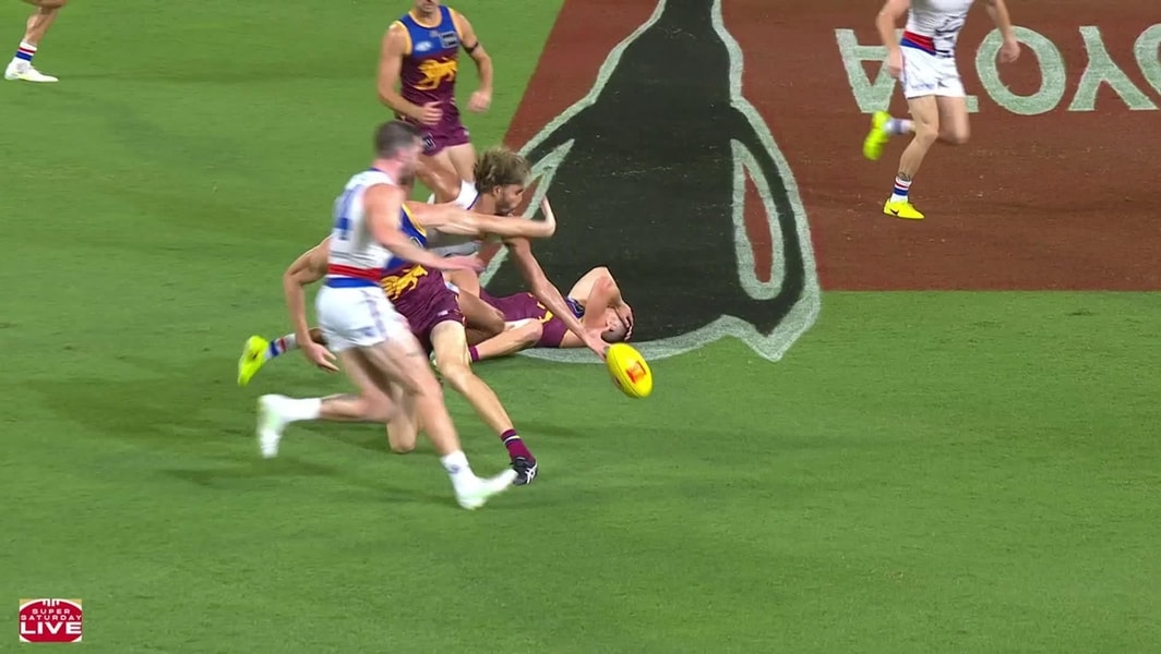 Brisbane’s co-captain will have a nervous few days after a third-quarter incident left Bulldog Arthur Jones concussed. Andrews spoiled the ball in a marking contest on the wing, and while trying to get back to his feet, threw his left arm back in the direction of Jones. His elbow hit the small forward in the head, knocking him out and forcing Jones from the field for the rest of the game.