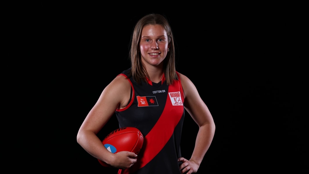 Maggie Johnstone poses after being taken by Essendon in the 2025 AFLW Draft. Picture: Getty Images