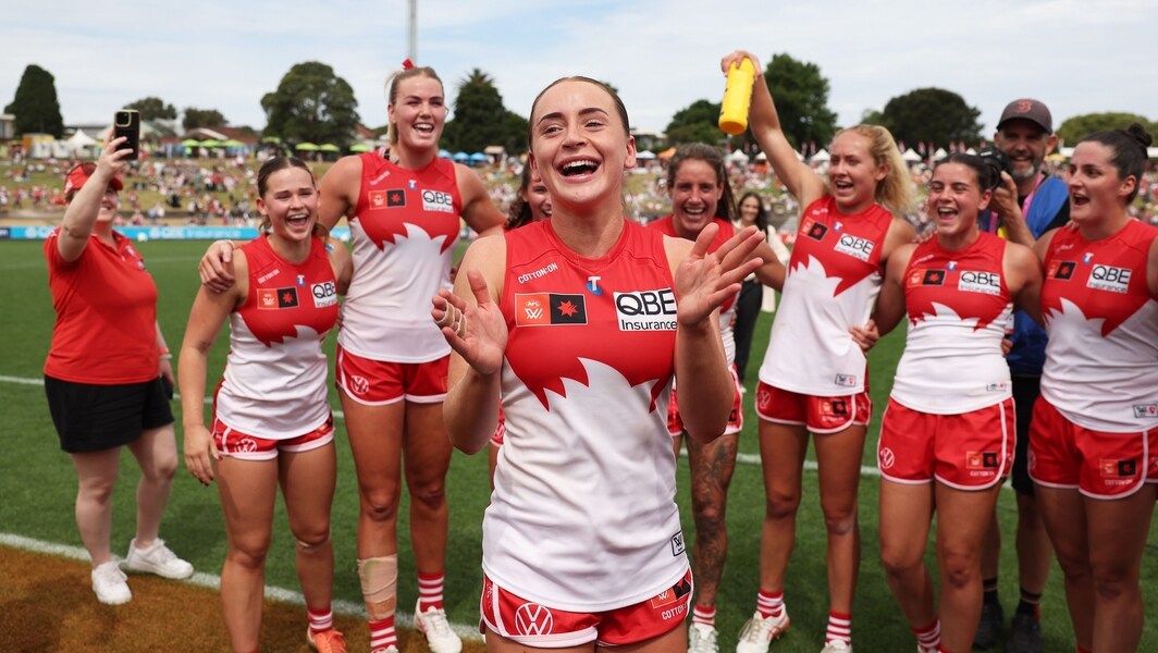 Laura Gardiner celebrates after the AFLW Round 11 match between Sydney and West Coast at Henson Park, October 25, 2025. Picture: AFL Photos