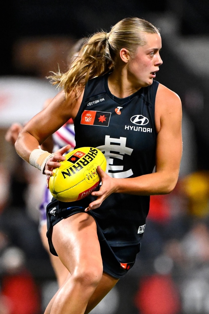 Brooke Vickers in action during the match between Carlton and Fremantle at Ikon Park in round seven, 2025. Picture: AFL Photos