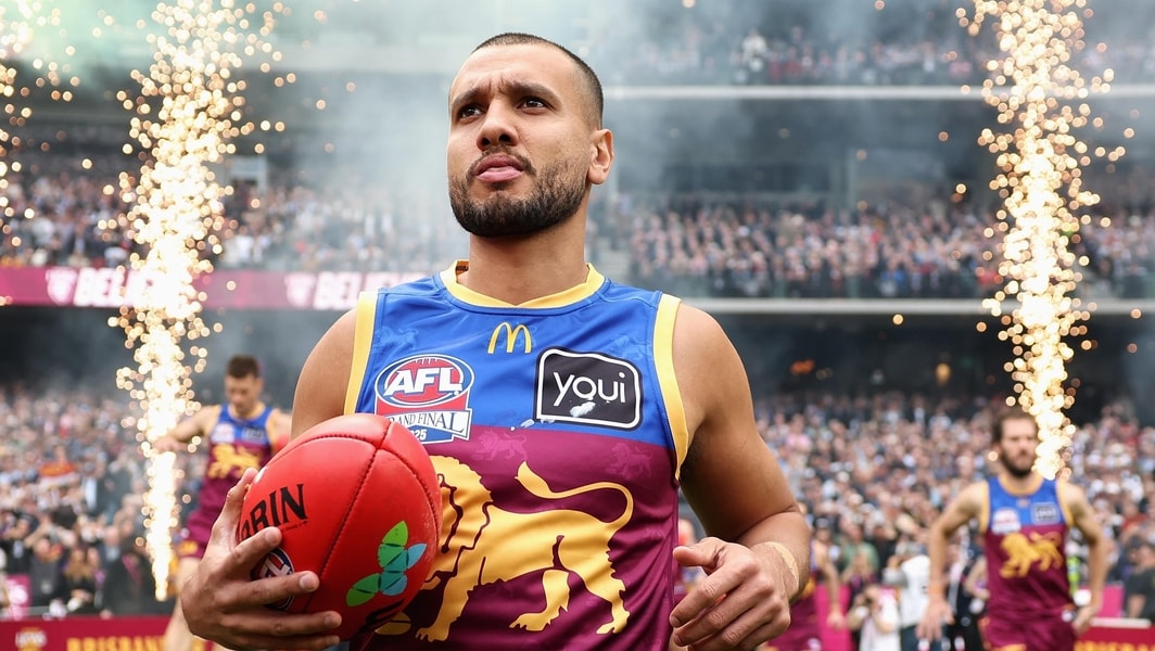 Callum Ah Chee runs out ahead of the 2025 Grand Final between Brisbane and Geelong. Picture: AFL Photos