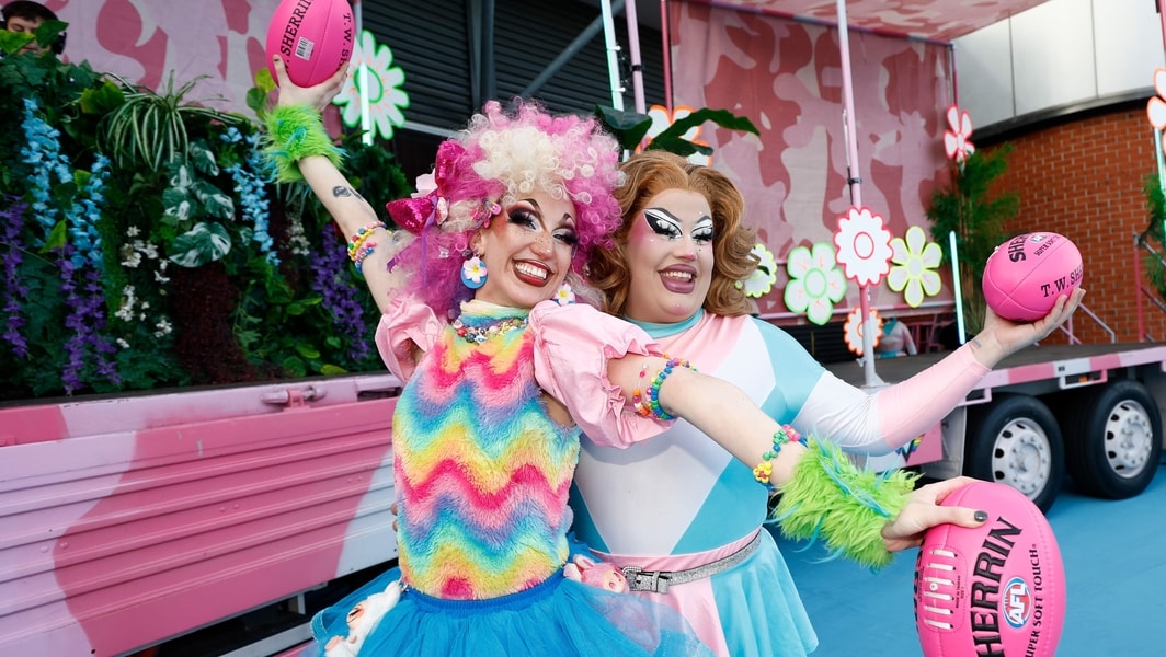 Entertainers are seen as part of Pride Round before the match between the Western Bulldogs and Essendon at Whitten Oval in round nine, 2025. Picture: AFL Photos