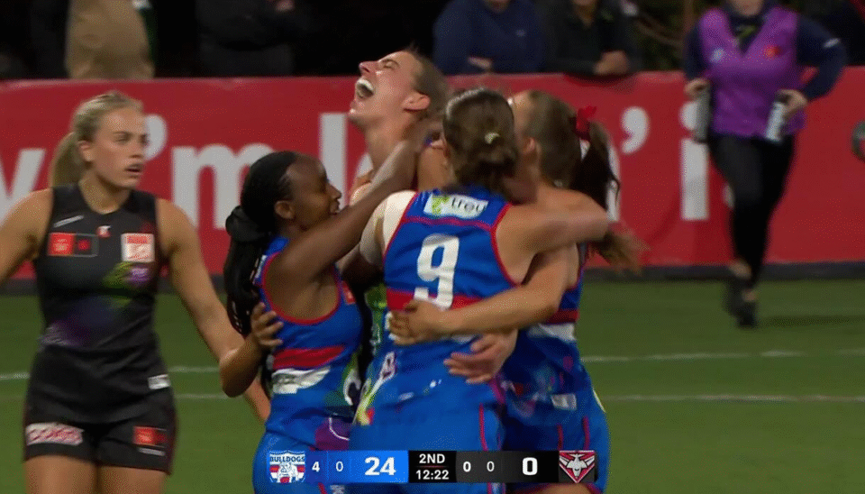And that was all when they actually got their hands on the footy. The Dogs dominated possession, and no matter how hard Georgia Nanscawen (25 disposals, six tackles) worked at the coal face, Essendon couldn’t find control with ball in hand. Five Bombers failed to register a touch in the opening quarter, signalling an ominous trend for the remainder of the evening.
