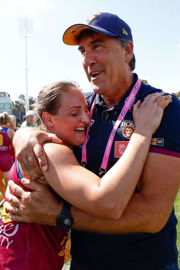 WHEN Brisbane defeated Carlton last Saturday night to qualify for its seventh AFLW Grand Final, one of the first moments of joy for coach Craig Starcevich came courtesy of a full-blooded chest-bump from effervescent midfielder, Belle Dawes.
