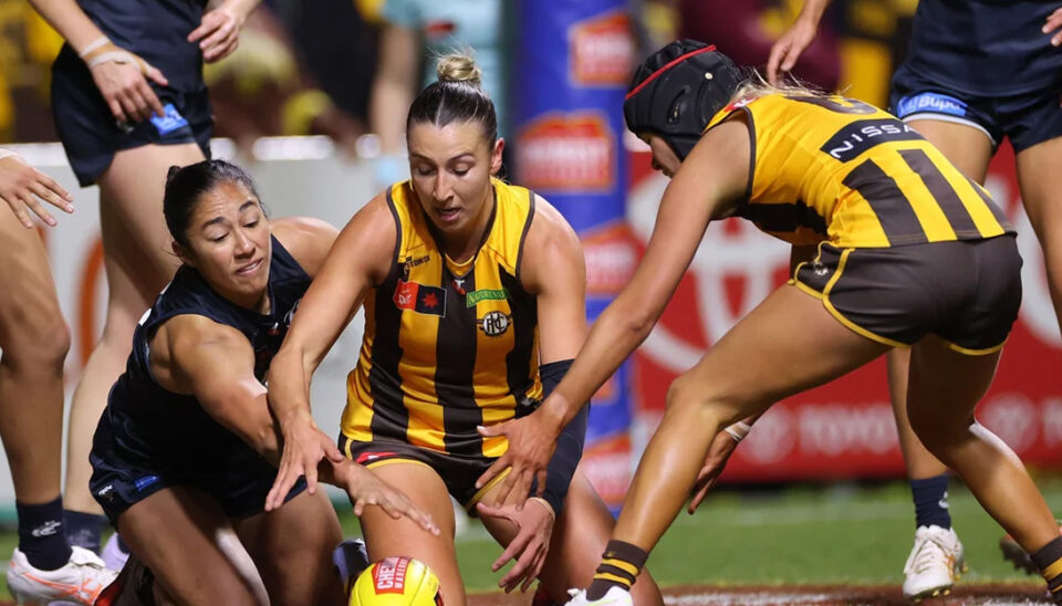 Carlton’s backline has made big strides this year when it comes to using its interceptors as launchpads into attacking movement, so hopeful kicks forward are likely to be picked off by the likes of Harriet Cordner and Maddie Hendrie, and sent back into the Blues’ hands. Given the form of Cordner in particular, could the Hawks opt to send someone to occupy her, or are they too thin on the ground to sacrifice a forward to a largely defensive role?