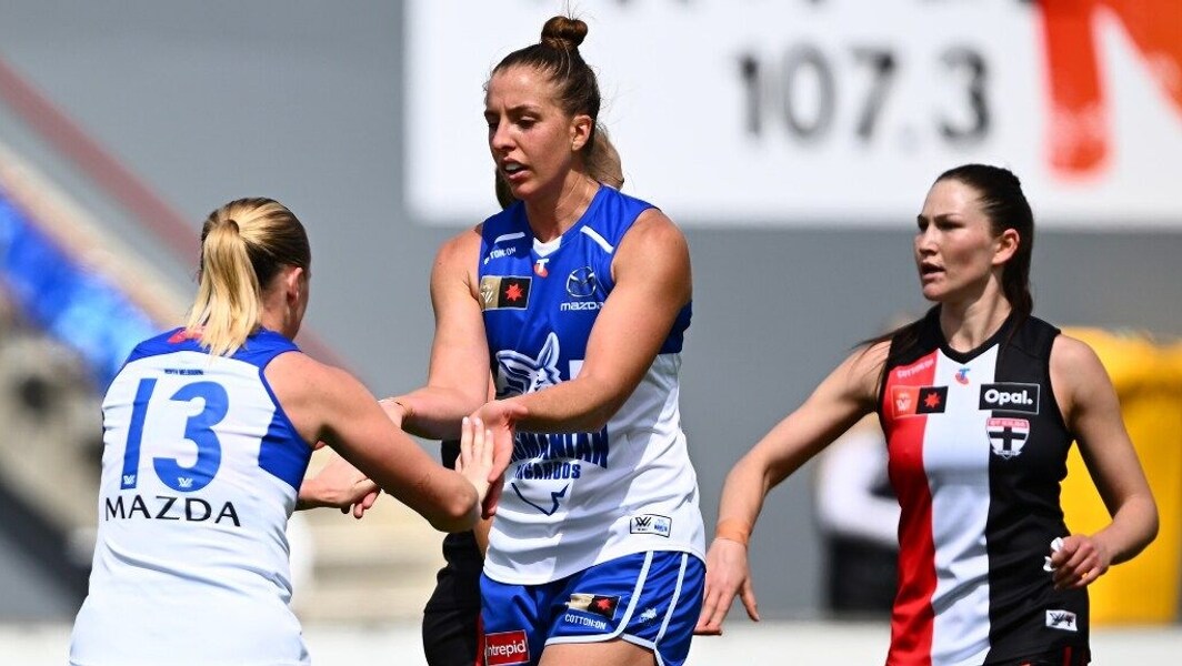 Aided by a breeze, St Kilda got its first major on the board after a strong contested mark from Jesse Wardlaw – who traded niggling blows with Libby Birch during the entire game – and Hannah Priest kicked a second, but North Melbourne piled on three quick goals late to set up a game-winning break.