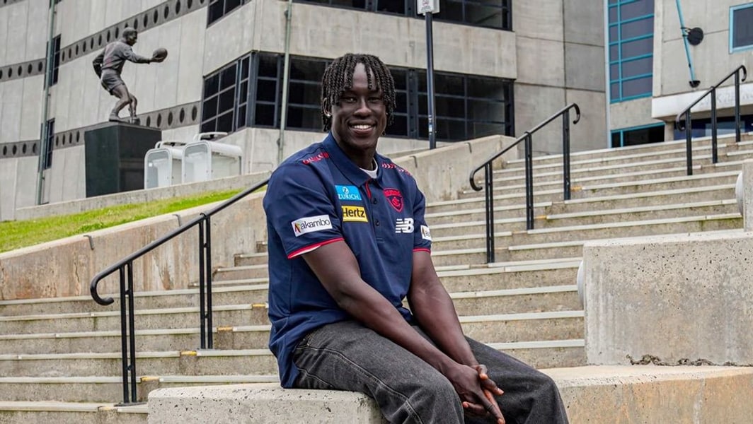 Changkuoth Jiath outside the MCG after joining Melbourne from Hawthorn. Picture: Melbourne FC