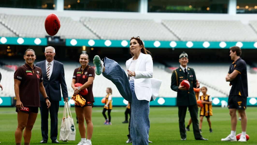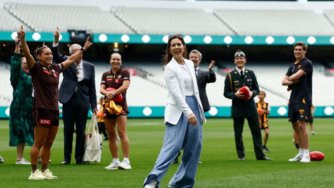 Joined by her husband King Frederik X, she mingled with Hawthorn players James Sicily and Will Day and AFLW counterparts Emily Bates and Eliza West.