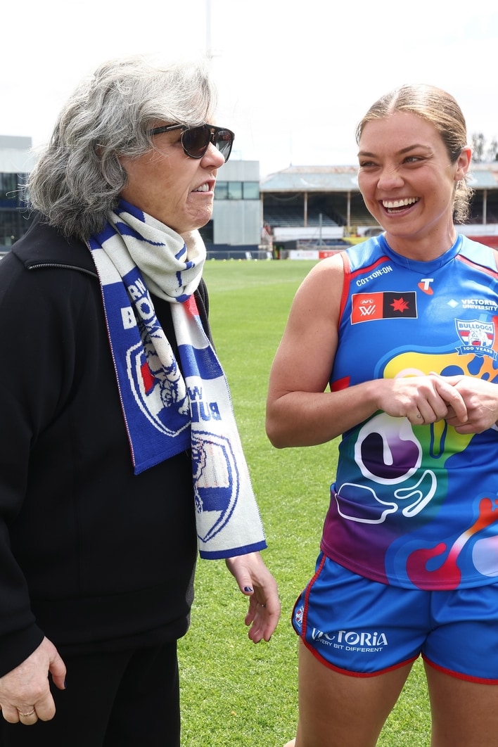 Learning to kick a footy with a host of Victorian AFLW players, including Western Bulldogs champion Ellie Blackburn, Collingwood fan favourite Sarah Rowe and North Melbourne premiership defender Erika O’Shea, she is starting to get her head around the oval ball.