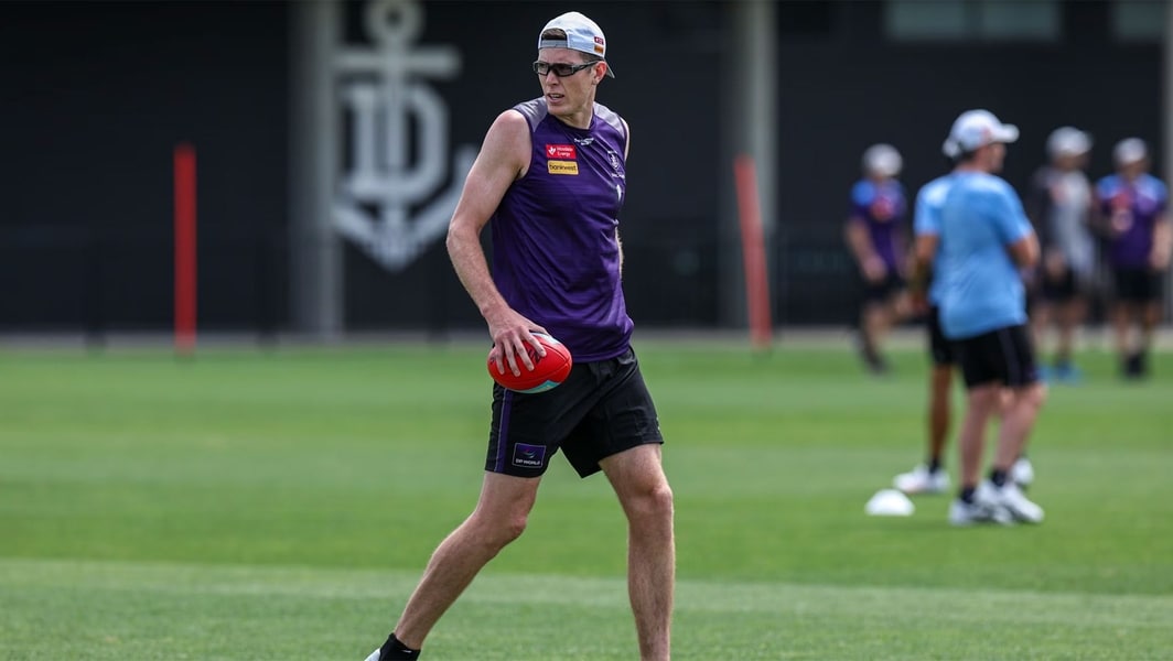 Mason Cox at Fremantle training on November 24, 2025. Picture: Fremantle FC