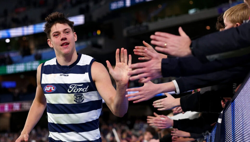 Now a rising Geelong defender, he’s hoping to help the Cats make it three from three on Saturday.