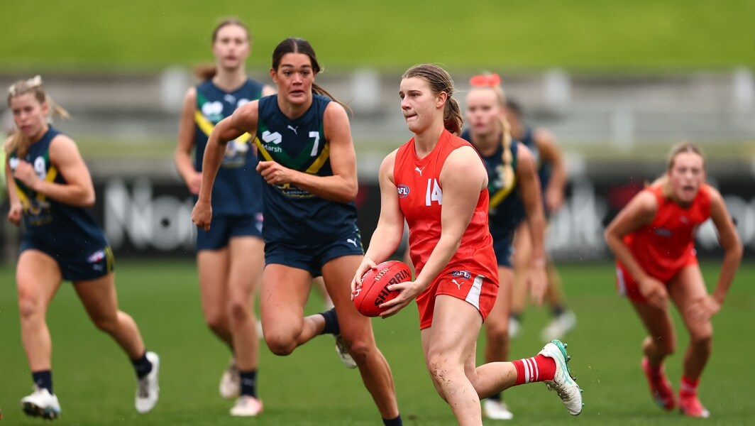Carys D’Addario in action during the match between AFL National Academy Girls and U23 All Stars at Whitten Ovalon June 8, 2025. Picture: AFL Photos