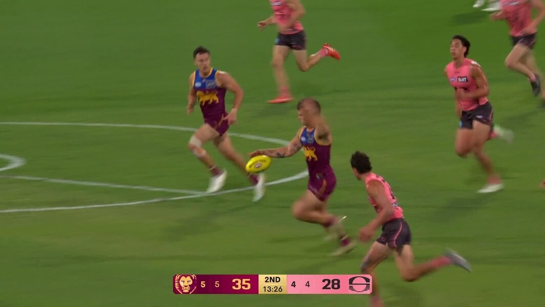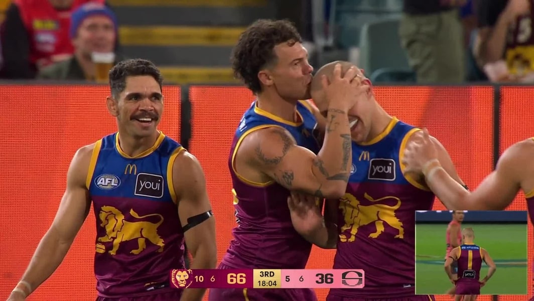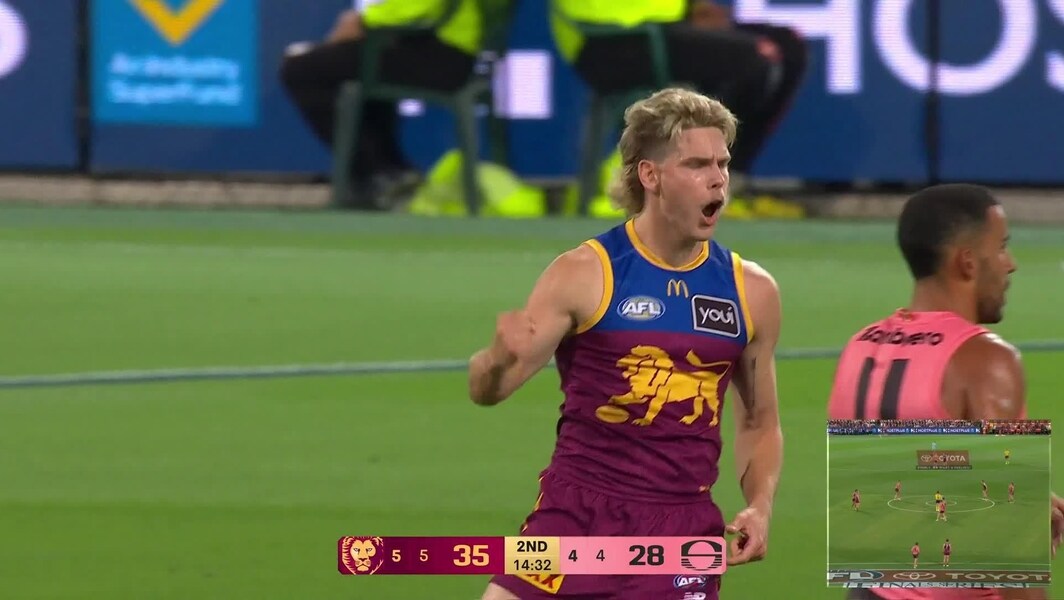 Will Ashcroft’s pair of goals had the Lions firing on all cylinders – his first a superb snap off the back of stoppage – and the margin steadily growing. But not to be outdone, Rayner launched a whopping roost on the run from just ahead of the centre circle to deliver the goal of the night.