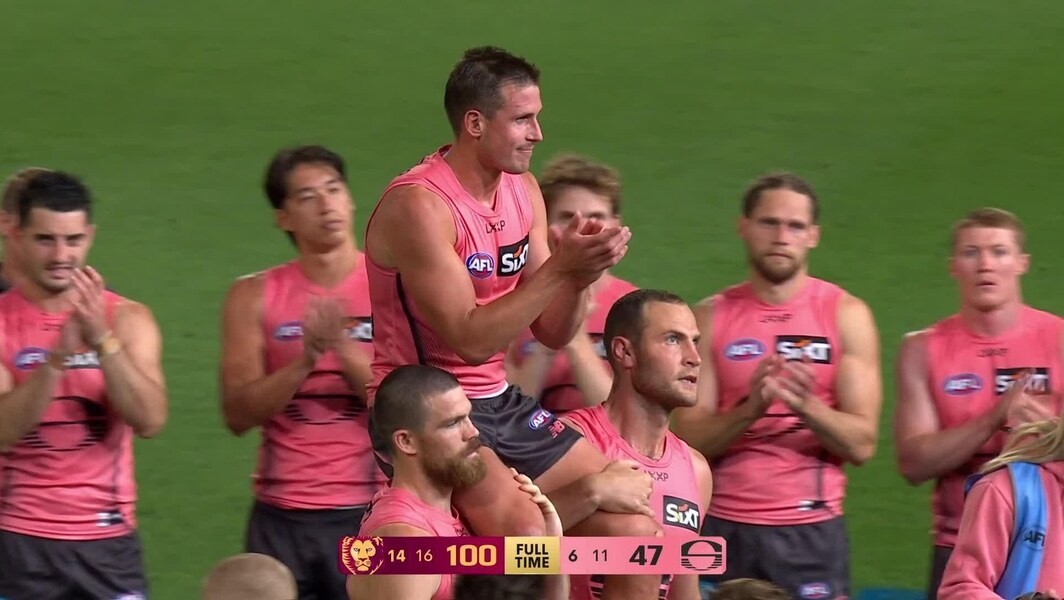 Ben Ainsworth finally broke the Lions’ run of six consecutive goals midway through the fourth term, however it was too little too late as Brisbane roared – and soared – on Queensland’s biggest football stage to-date.