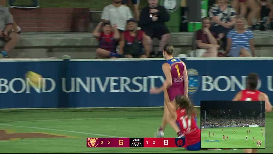 Melbourne’s desperation was exemplified by a wonderful effort from Tahlia Gillard midway through the quarter when she chased Eleanor Hartill from behind, putting enough pressure on the Lion for her to spray her 15m kick when a near certain goal beckoned.