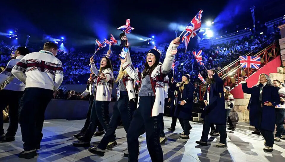 Matt Weston, the male flagbearer, won two golds in skeleton – the men’s event and the team competition with Tabby Stoeker.