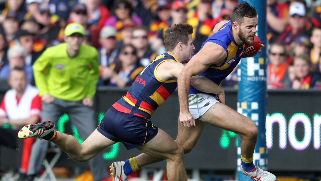 Mitch Brown in action during West Coast’s clash with Adelaide in round 19, 2014. Picture: AFL Photos