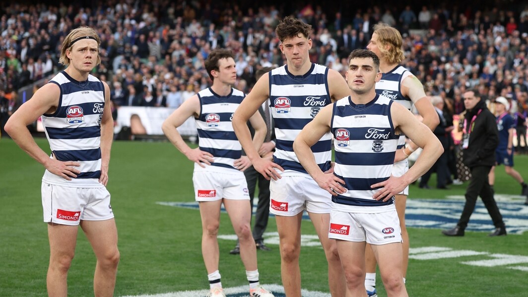 Geelong players look dejected after their Toyota AFL Grand Final loss to Brisbane on September 27, 2025. Picture: AFL Photos