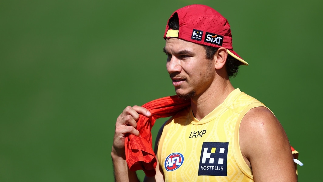 Daniel Rioli during Gold Coast’s training session at Austworld Centre on August 7, 2025. Picture: AFL Photos