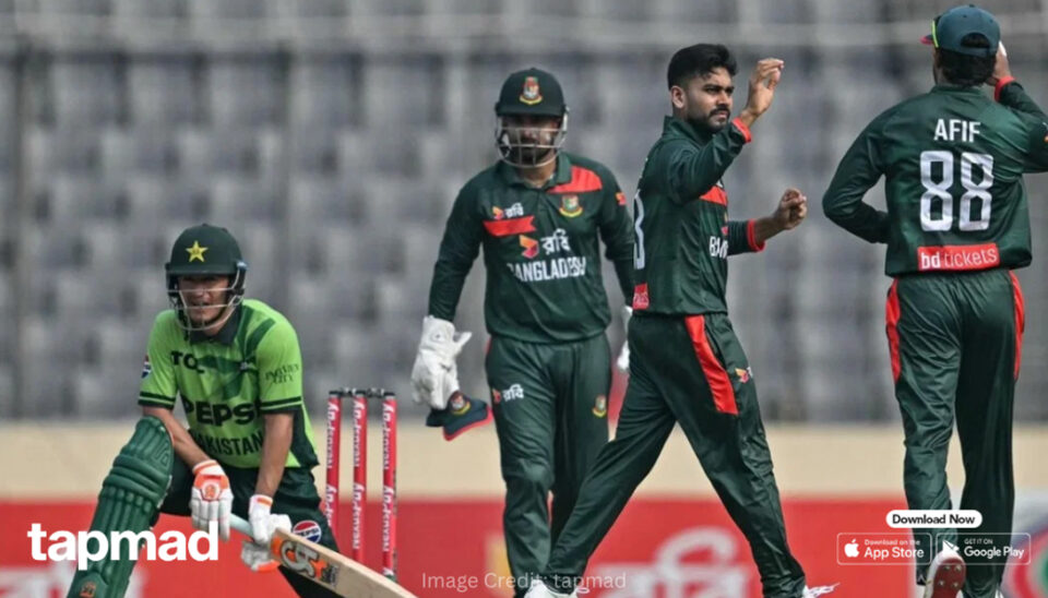 The Sher-e-Bangla National Cricket Stadium is a cauldron of noise as the Tigers’ pacers extract every bit of spice from the surface. What started as a hopeful chase for the “fresh-faced” Green Shirts quickly turned into a procession. Openers Sahibzada Farhan (6) and Maaz Sadaqat (6) failed to weather the early storm, but the true hammer blow came in the heart of the middle overs.