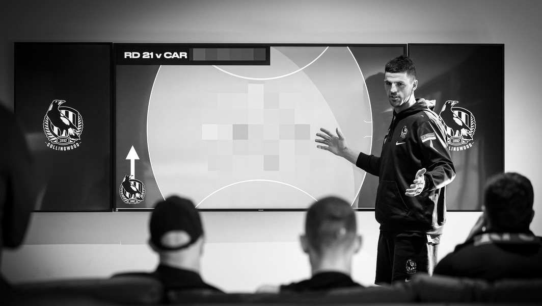 Scott Pendlebury leads a strategy session at Collingwood in 2024. Picture: AFL Photos