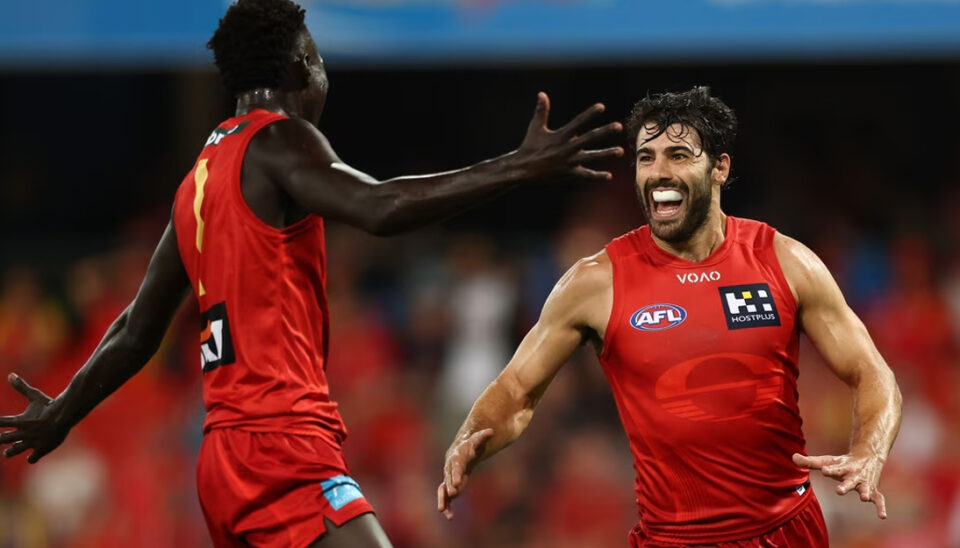 Leaving Melbourne after 11 seasons, Christian Petracca could not have had a better start to life with Gold Coast. He opened his goalscoring account with a wonderful finish during a first quarter Suns avalanche that bought the home crowd to their feet. After a handball into space from Ethan Read, Petracca straightened up, and off two steps with pressure coming from his right-hand side, expertly threaded the needle from 35m.