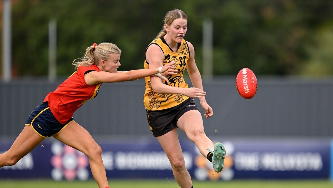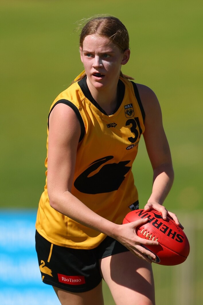 Olivia Crane in action during the Marsh AFL National Championships U18 Girls match between Western Australia and South Australia at Revo Fitness Stadium on June 29, 2025. Picture: AFL Photos