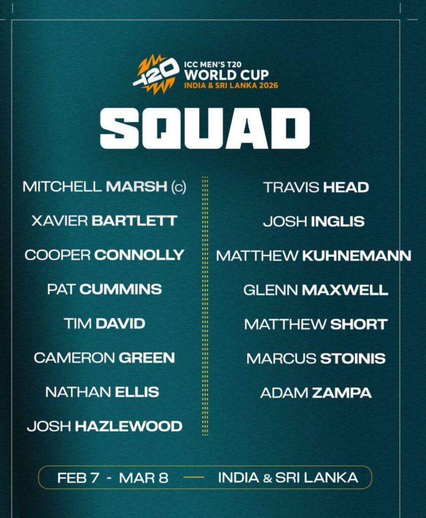 Pat Cummins, Cameron Green and Cooper Connolly return to the squad having missed the most recent T20 Series against India.
