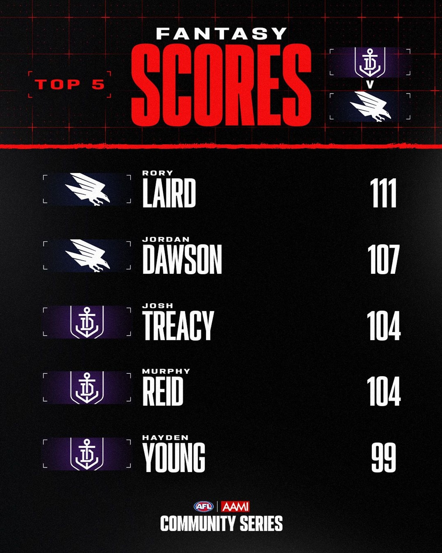 Fremantle: Treacy 5, Amiss, Bolton, Clark, Frederick, Jackson, Murray, Voss