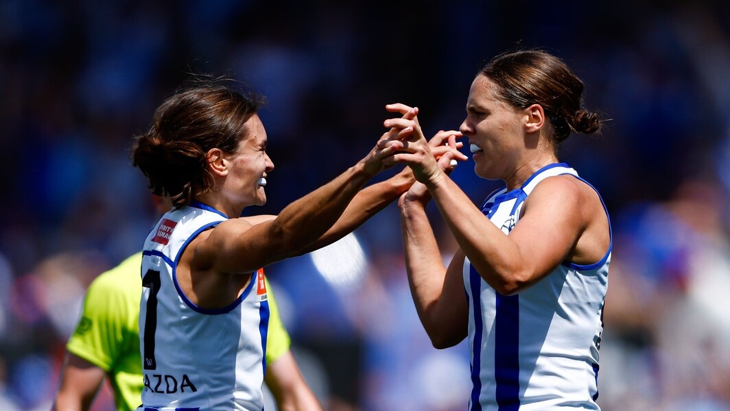 Jasmine Garner and Ash Riddell during the AFLW Grand Final between North Melbourne and Brisbane at IKON Park, December 3, 2023. Picture: AFL Photos