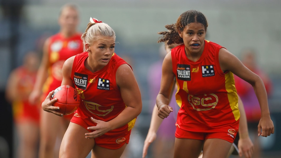 Ava Usher in action during Gold Coast Academy’s clash against GWV Rebels in the Coates Talent League Girls on May 21, 2023. Picture: AFL Photos
