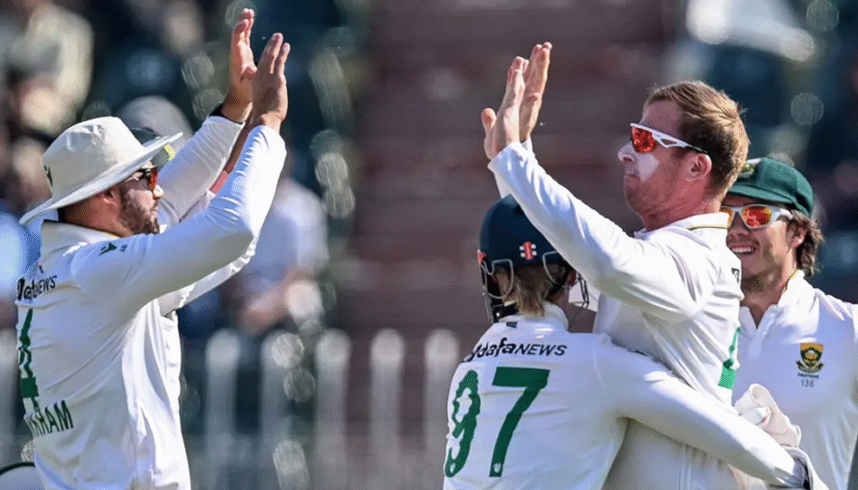 Hosts Pakistan, winners by 93 runs in the first match to end the Proteas’ 10-Test winning run, resumed in trouble on 94-4 in their second innings with a lead of 23, and slipped further when they lost Babar Azam lbw to Simon Harmer for 50.