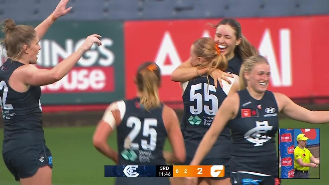 Pocket rocket, excitement machine, human highlights reel… use whatever term you want, it’s sure to be applicable to Sophie McKay. From just her handful of games, the vivacious first-year Blue has had an immediate influence on her side and a key contributor to her side’s tilt towards finals football. Equal parts creative and destructive (in an opposition sense) with ball in hand, the 19-year-old has caught the eye not just through her bright red locks, but through her superb pace which can weave her out of trouble — be it from her opponents or even errantly tackling teammates as seen this weekend just gone —  and ability to connect the Blues by hand when moving into attack. Much like Brisbane’s Courtney Hodder, McKay hasn’t needed to amass a wealth of possessions to make her presence felt. You certainly notice when she does have it, but McKay does start winning more of the footy in the coming seasons, her awe-inspiring traits are going to elevate tenfold. Going at over goal per game on average in her debut year, the father-daughter recruit is more than living up the esteemed family name as she and sister/captain Abbie will the Blues closer to November action. Alongside Poppy Scholz, who has had an equally impactful season and is also in the running for the AFLW Telstra Rising Star, Carlton’s youth is more than just good news for the ‘Baggers, but the evolution of the competition as a whole.