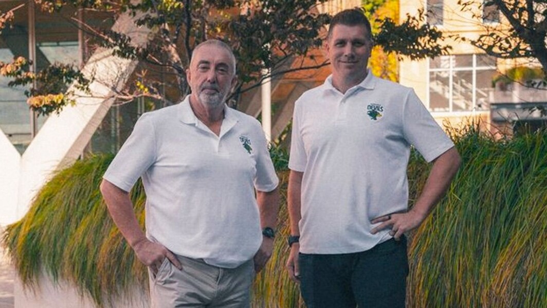 Derek Hine and Todd Patterson after their appointments as Tasmania’s Head of Recruiting and Head of List Management & Strategy. Picture: Tasmania FC