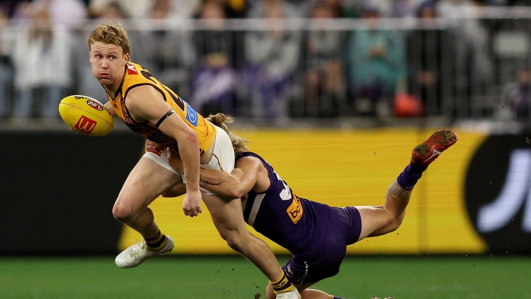 Cam Mackenzie in action during the round 18 match between Hawthorn and Fremantle at Optus Stadium on July 12, 2025. Picture: Getty Images/AFL Photos