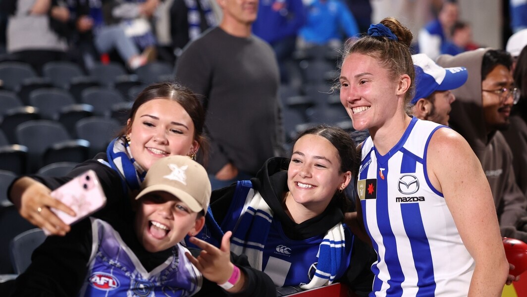 Tahlia Randall with fans during North Melbourne’s qualifying final against Hawthorn on November 7, 2025. Picture: AFL Photos
