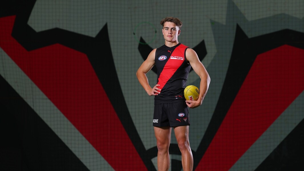 Essendon draftee Sullivan Robey poses for a photo on November 25, 2025. Picture: Getty Images