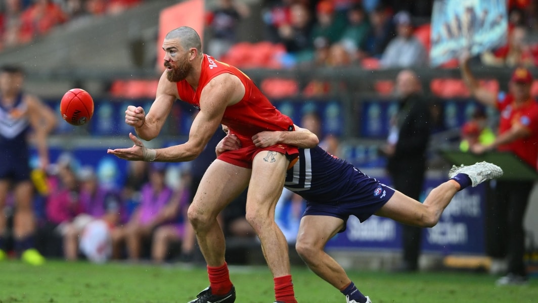 Sam Collins in action during Gold Coast’s clash against Fremantle in round 12, 2025. Picture: AFL Photos