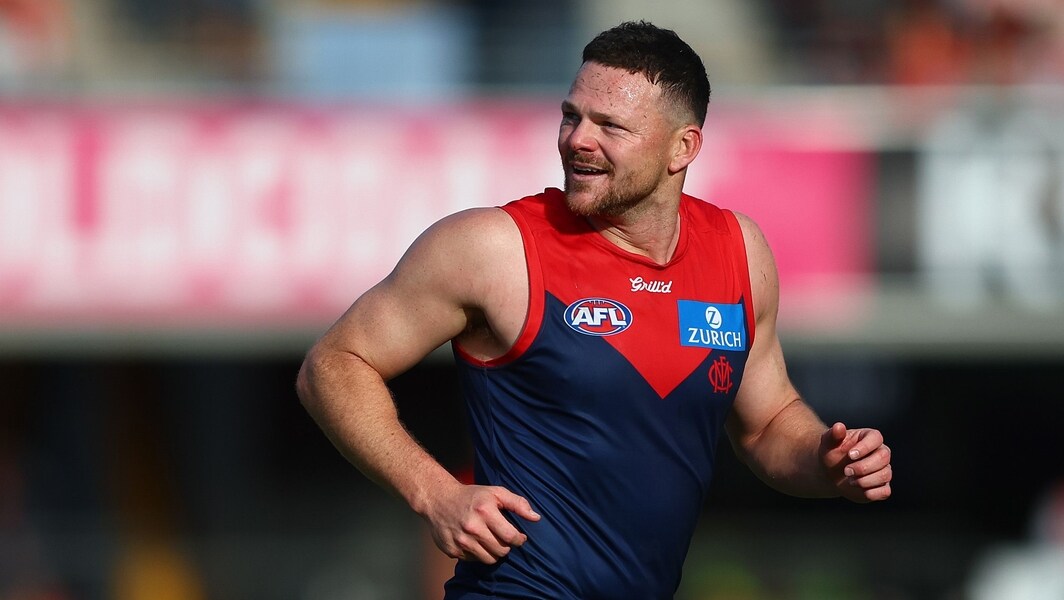 Steven May in action during the match between Gold Coast and Melbourne at People First Stadium in round 16, 2025. Picture: Getty Images
