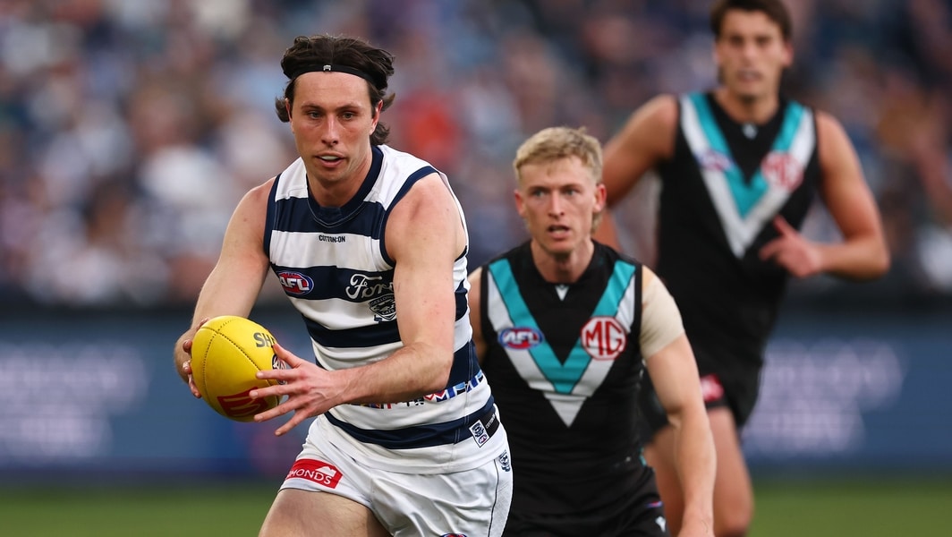 Jack Henry in action during Geelong’s clash against Port Adelaide in round 21, 2025. Picture: Getty Images