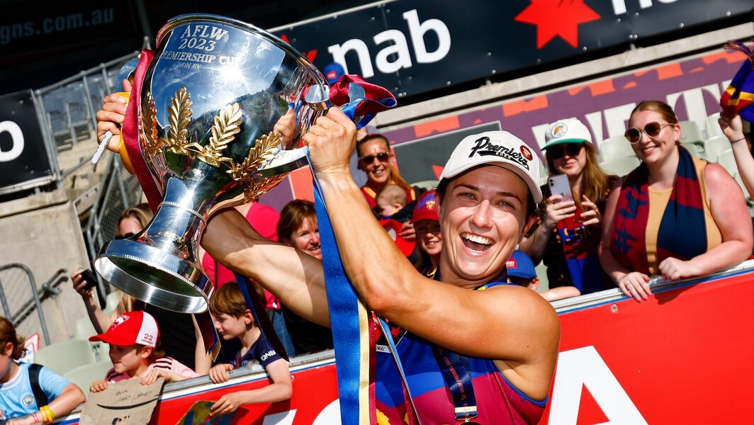Cathy Svarc celebrates during the AFLW Grand Final between Brisbane and North Melbourne on December 3, 2023. Picture: AFL Photos