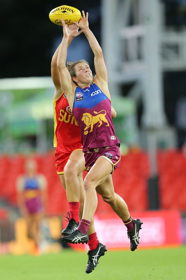 Cathy Svarc in action during the AFL QW Winter Series match between Brisbane and Gold Coast at People First Stadium on May 25, 2019. Picture: AFL Photos