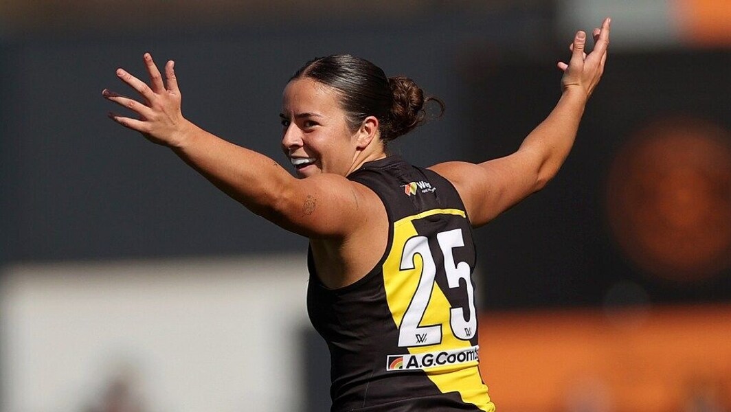 Grieves has been a shining light for Richmond in what has been a challenging season at Tigerland. Selected with Pick. No. 11 in last year’s draft, Grieves had to wait until round three to debut. The 19-year-old-slotted in seamlessly into the Tigers’ line-up, with 18-disposals, five score involvements and four inside 50s in her debut game against Essendon in Darwin. Grieves has played every game since, averaging 14.5 disposals, three marks and three tackles a game.
